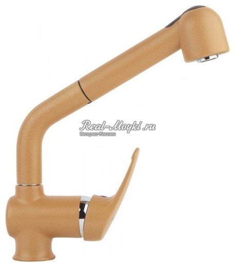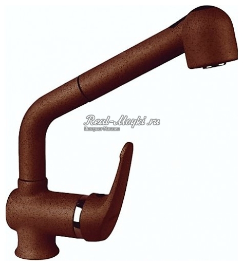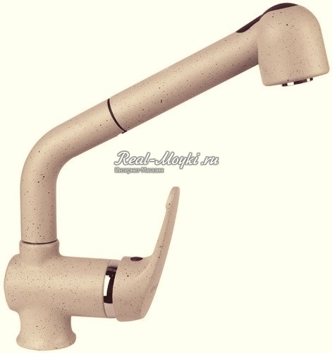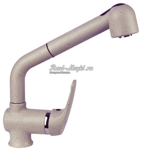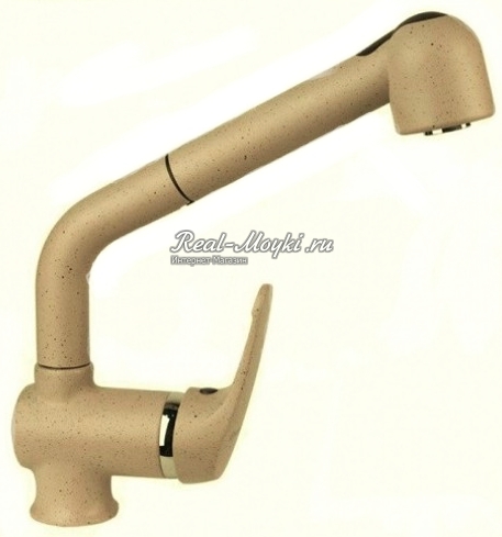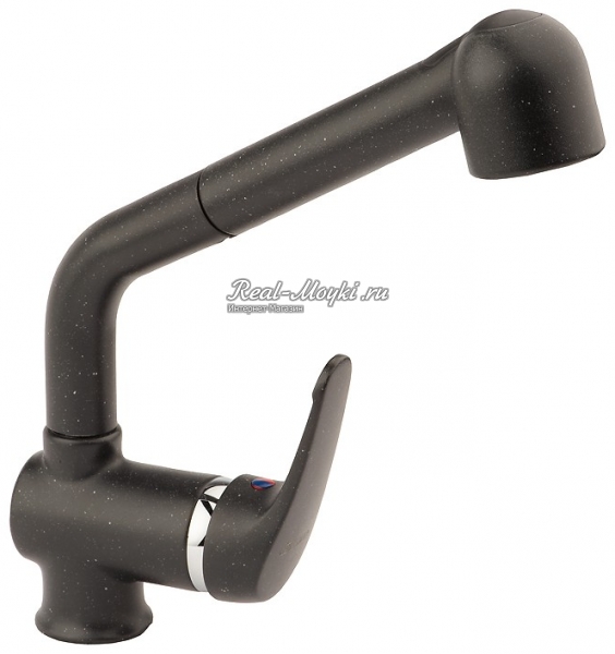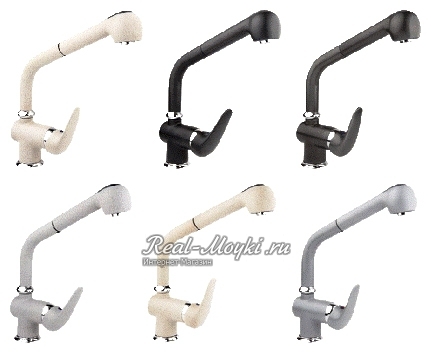 Смесители под гранит: сделаны из латуни с гальваническим цветным покрытием. Поэтому и цветовая гамма такая большая. Визуально смесители с покрытием под гранит не будут отличаться от гранитных моек, главное подобрать цвет. Такие смесители имеют всегда основной цвет и мелкие цветные вкрапления, к примеру, черный металлик – это черный смеситель с металлическими вкраплениями.