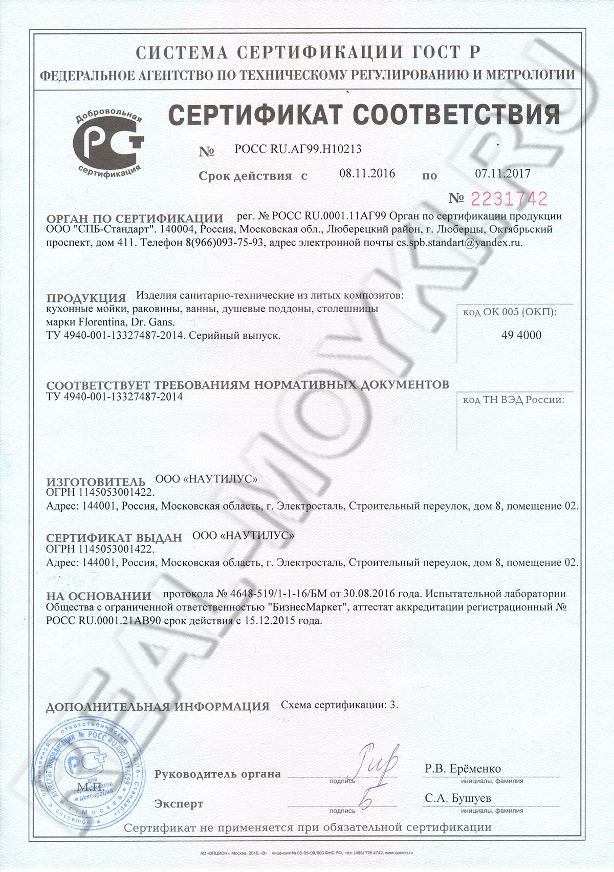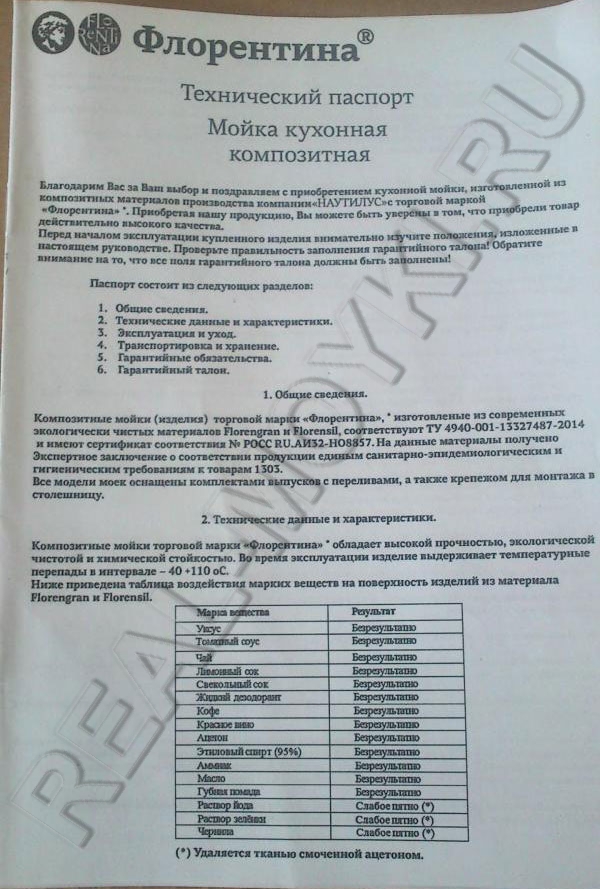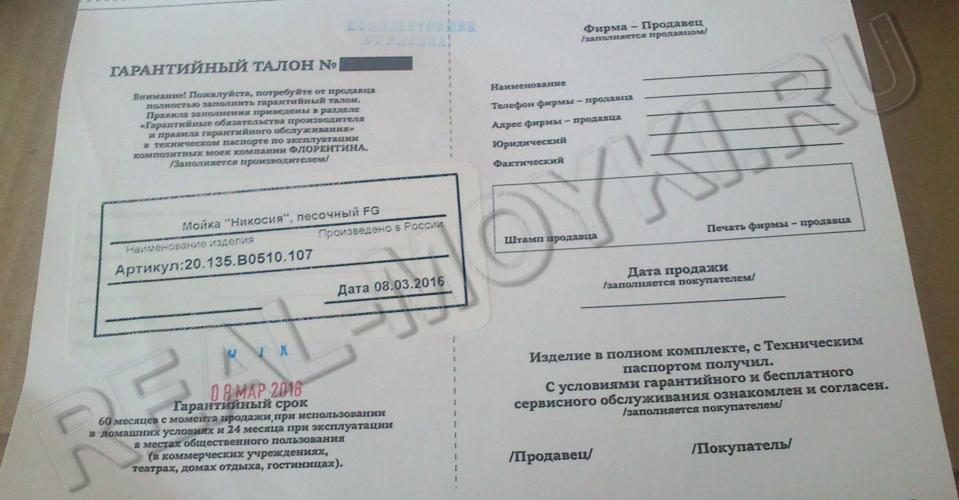 Все Мойки для кухни Florentina, расположенные на страницах нашего магазина, в то числе и модель Rodos-760, обладают сертификатами качества производителя, помимо чего, вместе с купленным товаром, каждый наш клиент получает длительную гарантию от производителя, которая способна защитить его от любых проблем, связанных с эксплуатацией покупки.