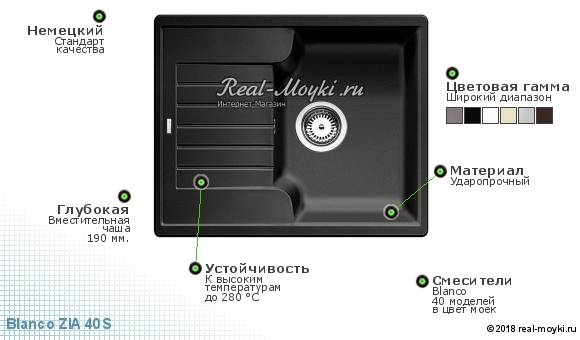 Мойка из гранита Blanco ZIA 40S – это потрясающее решение всевозможных проблем и небольших затруднений, которые связанны с домашними делами на кухонном пространстве. Она отличается, прежде всего, высоким сроком службы, так как данный материал славится своей долговечностью и высокой надежностью.